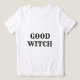 Dia de as Bruxas engraçado moderno e fofo - Boa Bruxa Negra e Branca - Camisa Tripla. Este recurso de design de camisa é texto em letras brancas com um pequeno sotaque gótico. Comemore o Halloween em estilo com esta camisa de design da tipografia "Boa Bruxa" personalizada que pode ser personalizada com o seu texto preferido de Boa, Má ou Outra Bruxa.
