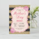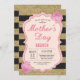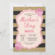 Convite para Dia de as mães Brunch. Flor Rosa. Dourada Glitter. Chic Floral de Flor de Água. Dourada Brilhante e Pretos. Cor Floral da Aquarela. Digital Imprimível.
