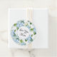 Esta etiqueta de presente é mostrada em forma redonda com uma adorável impressão floral azul hydrangea. Texto: Ame-o Mãe Personalize este item ou comprar como está.