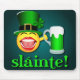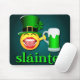 Rua. Smiley face de Dia de Patrick © Sunny Mars Designs. Este mousepad de Dia de São Patrício mostra um smiley face risonho vestindo um chapéu de duende e segurando um copo de cerveja verde ou cerveja. Abaixo, a ilustração é escrita no texto "Sláinte", que é um brinde irlandês que significa "à sua saúde".