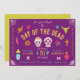 Convide seus amigos para celebrar o Dia dos Mortos com este convite colorido! Apresentando muitos gráficos e cores. Personalize o texto com o editor online. Os convites impressos ou o convite digital podem ser solicitados.