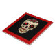 Um design do estilo do crânio do açúcar para o dia do morto - Diâmetro De Los Muertos. Crânio com corações e flores, rosas vermelhas, em um fundo preto e vermelho.
