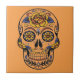 Uma bela imagem gótica de um crânio mexicano com flores decoradas no dia do estilo morto. Isso é definido em relação a um fundo de cor personalizável.