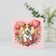 Cartão do dia dos namorados com um Fox Terrier com flores e balões em forma de coração.