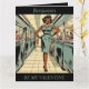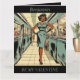 Retro, vintage, elegante mulher dos anos 50 no metrô cartão dobrável do Dia dos Namorados. O texto é editável ou pode ser excluído se preferir. Também pode ser usado como cartão de aniversário ou qualquer cartão de aniversário.