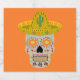 Este maravilhoso conjunto de rótulos de garrafas de licor apresenta uma imagem design gráfica de um Dia Mexicano dos Mortos (Dia de los Muertos) inspirado no crânio. O crânio é uma cinza pálida e está vestindo um sombrero amarelo. Ela tem dentes de ouro e girassóis mexicanos, também chamados de titonias em vez de olhos. O sombrero tem um cacto e está coberto por padrões de espiral bonito e pimentões-do-sul e vermelhos. O próprio crânio está coberto por flores bonito e coloridas de diferentes tipos.
