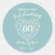 Diamante comemorando 60 anos de adesivos de aniversário de amor. Simples esboço da cinza gráfica de efeito de pedra cardíaca aqua azul e branca 60ª etiqueta adesiva redonda de aniversário de casamento do Diamond. Personalize com seus próprios 60 detalhes de festa de casamento de diamante. O 60º aniversário é tradicionalmente associado ao diamante e o coração simboliza o amor. Gráficos e design por Sarah Trett para www.mylittleedenweddings.com no zazzle.