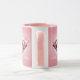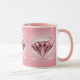 Esta caneca rosa combo apresenta uma imagem de um grande diamante rosa flutuando sobre um fundo rosa. O diamante está em estilo contemporâneo com múltiplas facetas geométricas e uma superfície brilhante que reflete a luz. Um delicado rastro cor-de-rosa brilhante de pequenos diamantes rodopia o diamante principal, criando um efeito halo. O fundo apresenta um gradiente suave de tons cor-de-rosa radiando para fora do diamante, com uma sutil sombra sob a joia. A caneca é uma caneca rosa combo.