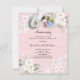Para um elegante e romântico 60º aniversário de casamento. Um fundo cor-de-rosa pincelado decorado com flores, rosas, diamantes falsos e rendas brancas. Personalize e adicione sua foto, nomes e detalhes. 1 folha = 1 convite impresso de borda a borda.