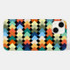 Esta capa de telefone tem um design geométrico de diamantes de cor clara que se sobrepõem num campo de preto.