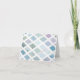 Este design de aquarela original apresenta cores pastel moles em um padrão de painel de janela de diamante. Este cartão pode ser personalizado com um nome. A tipografia é colocada no painel branco da janela em uma diagonal. As cores são tons e tons de azul com algumas púrpuras.