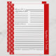 Folhas de receitas personalizáveis em um padrão de diamante anelado com amplo espaço escrevendo na frente e atrás. Personalize o cabeçalho da seção com o nome da categoria de sua escolha. Disponível em uma variedade de cores como uma compra separada para que você possa coordenar com nossos aglutinantes de receitas ou misturar e combinar para que cada seção tenha uma cor diferente.