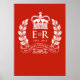 Este poster especial commorativo carrega uma design que remonta aos anos jubilosos anteriores com a terra dos louros, significando os 60 anos de serviço da Rainha Elizabeth ao seu país. Nós o chamamos simplesmente, Garland. Inclui também uma interpretação da coroa da Rainha acima da clássica insígnia E II R e dos anos do jubileu. Apresentamo-lo aqui em Vermelho Regal, mas você pode personalizar a cor de fundo facilmente clicando em 'Personalizar' e em 'Editar' e finalmente em 'Fundo'. Na parte inferior direita da paleta você verá um pequeno código. Você pode digitar códigos para várias cores, isto é, C61F0D para o vermelho real, 000042 para o azul real ou 006633 para o verde glúroso. Você pode, é claro, clicar em qualquer uma das cores apresentadas na própria paleta. Mostre seu apoio a Sua Majestade a Rainha e a Família Real no ano do Jubileu exibindo esta poster orgulhosa.
