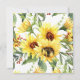 Anúncio floral em movimento, com buquê de girassóis e flores margaridas, sobre fundo branco, com uma coordenação.