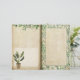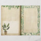 Um papel com efeito envelhecido, com pergaminho antigo, planta doméstica e belo padrão de folhas em aquarela verde para enquadrar suas notas. Isso é perfeito para fazer diários de jardinagem e álbuns de natureza.