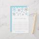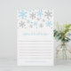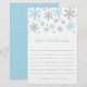 Este cartão de dicas de chuvada de bebê apresenta flocos de neve azuis e prateados e brilho prateado falso. Adicione suas informações no formulário de modelo. Altere a fonte e o layout usando o recurso Personalizar.