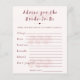 Adicione um toque significativo e memorável à sua celebração com este cartão boho floral "Conselhos para a Noiva". Projetado com suaves acentos botânicos e tipografia moderna, ele convida os convidados a compartilhar conselhos, desejos e dicas de casamento para a futura noiva. Perfeito para chás de panela, este cartão elegante se torna um item de recordação que a noiva pode guardar por muito tempo após a celebração, repleto de amor, sabedoria e mensagens atenciosas de familiares e amigos.