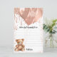 Para um Chá de Bebê. Um fundo branco elegante. Decorado com dourado rosa, gotas, efeito de tinta pingando, serpentinas de festa, balões e um ursinho de pelúcia fofo.