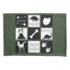 Os dinossauros pré-históricos temem o travesseiro em silhuetas brancas e pretas sobre o verde escuro.