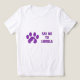 Diga Não à design de pata L em roxo na frente; PetAdvocare.com e informações do grupo FB na parte traseira.