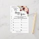 Diga que o jogo de versão em inglês e espanhol do Spice chá de panela está incluído (frente e verso). Mude Bride para Name (Nome) no modelo para as versões em inglês e espanhol. Para obter mais personalização (alterar o número de especiarias e qualquer outro texto, cor da fonte, estilo da fonte ), clique em personalizar, role para baixo e clique no link "clicar para personalizar ainda mais". Como jogar: tenham dez especiarias diferentes, os hóspedes irão anotar seu palpite sobre cada especiaria, cheirando e olhando apenas, a pessoa com as respostas mais corretas ganha!