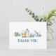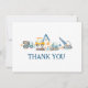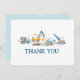 Um cartões de agradecimentos com caminhões de construção e veículos em aquarela. Uma maneira perfeita de obrigado os seus convidados por virem ao seu evento.