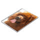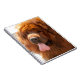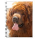 Diggy um caderno, caracterizando um Fim-acima bonito de um filhote de cachorro vermelho do Mastiff tibetano em um fundo do branco da pérola