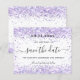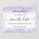 A Save the Date card for a 30 (or any age) festa de aniversário (Salvar a placa de data para uma (ou qualquer idade). Um fundo branco decorado com poeira brilhante violeta, de cor lavanda. Personalize e adicione uma data e nome/idade. O texto: Salvar a Data é gravado com um script de estilo com letra de tendência grande com alternâncias.