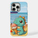 Dinô bonito comendo sorvete na praia