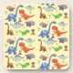 A design de relógio da parede mundial de Dino inclui dinossauros bonitos, vulcões e palmeiras.