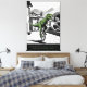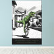 Cool T. Rex dinosaur canvas print with motivational quote relating to 'life is like riding a bicycle, must keep moving.' The amusing canvas print features a T. Rex dinosaur riding a unicycle along a cobbled street, with the motivational slogan relating to keeping your balance, keep moving, and is rendered in a cool stencil style.