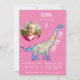 Para a garota que ama dinossauros especialmente o Brachiosaurus. Este dino Brachiosaurus convida-vos a uma festa de aniversário de dino divertida. Personalize este convite de festas de dinossauros com uma fotografia, o número de anos e os detalhes da festa, e você está preparado para um feliz aniversário de dino. Todos os amantes de dinossauros são bem-vindos. Ilustrada por Catherine Sweetman