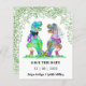 Alegre-se com este engraçado dinossauro temido casamento T Rex noiva e noiva com folhagem de floresta. Fácil de personalizar com os nomes da noiva e do noivo e a data do casamento. Colorida coloração d'água T Rex noiva e ilustrações nobres com tipografia moderna. Arte original única da artista Catherine Sweetman