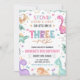 Dinossauro aniversário de 3 anos de Convite Rapari