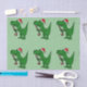 Dinossauro maravilhoso do t-rex do divertimento que guardara o bastão de doces e que veste o lenço de papel original da arte do Natal do chapéu do papai noel. Pode igualmente adicionar o texto feito sob encomenda e mudar a cor do fundo ao pedir.