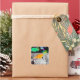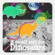 Dinossauros nos palitos de lua. Dois pequenos cartoons bonitos amigos de dinossauros verdes Tricerátops e Diplodocuments laranja no espaço na lua com estrelas coloridas e um belo adesivo de praça do planeta azul com texto personalizável "Um pequeno passo para os dinossauros". Esses dinossauros coloridos em adesivos espaciais são totalmente personalizáveis, adicione seus textos e imagens! Um belo presente de animação para os grandes fãs de dinossauros!