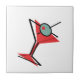 Cinzas, preto, vermelho e turquesa. Anos 50 puro retro. Vidro de Martini com a azeitona derrubada
