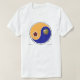 O Discordian Chao para as camisas brancas ou naturais, cercado com as palavras: "Nenhuma justiça para fazer a ordem do caos/nenhuma verdade para fazer a razão da loucura/somente do amor encontrar a beleza no mistério"