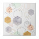 Hex Scatter I de Gabrielle McClure. Hexágonos de várias formas e designs espalhados sobre um fundo branco.