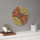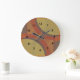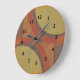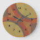 Dissolver relógios de parede com números pretos. A dissolução é um desenho abstrato criado pela Vexenwraith e constituído por círculos e retângulos vermelhos, laranja, oliveiras e cinzas.