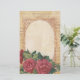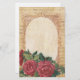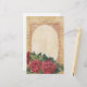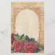 Aparência com área escrevendo oval delimitada por rendas vintage, notas musicais e rosas vermelhas profundas