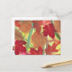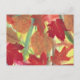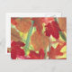 Pintura colorida divertida de folhas de outono em um fundo pastel abstrato, é impressa em cartões postais.