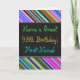 Esta design de cartão de saudação divertida, colorida e caprichosa, com tema de aniversário, apresenta um desejo quente de aniversário como "Tenha um Excelente 49º Aniversário, Nome!" na frente. O nome na frente pode ser personalizado. Há também listras multicoloridas na parte superior e inferior da frente. O dentro apresenta uma mensagem de aniversário que pode ser personalizada. Um cartão de boas-vindas como este poderia ser uma maneira divertida de fazer votos de aniversário a alguém que comemora seus quarenta e nono anos. [~Z0000269]