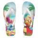 Estes chinelos têm um design divertido para o verão, apresentando uma cena de praia com flores, palmeiras, praia e oceano ao fundo. A imagem tem cores brilhantes que são perfeitas para o verão. Vista-os para a praia, piscina ou para fora e por aí durante o verão.