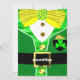 Ter um Dia de São Patrício, se for esse o caso, é o cartão de convite ideal com um gráfico de roupa de duende divertido, que tem até um bolso falso com moedas de ouro do seu pote de ouro a saltar, tão fofo. O convite temático do Paddy's Day Irish é adequado para festas divertidas para amigos e familiares personalizá-lo com texto pessoal para atender às necessidades do seu partido.