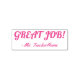 Este design de carimbo inspiracional mostra a mensagem "JOB EXCELENTE!" e o nome de um professor personalizado. Pode ser usado por um professor, educador ou orientador ao marcar trabalhos, para indicar que o aluno fez bem.