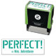 Este inspirador design de carimbo apresenta a mensagem motivacional "PERFECT!" e um nome de professor personalizado. Pode ser usado por um professor ou educador ao formando o trabalho estudantil, para reconhecer que um aluno fez um trabalho excepcional.