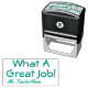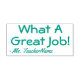 Este design de carimbo positivo apresenta a mensagem inspiradora "Que trabalho Excelente!" e o nome de um educador personalizado. Poderia ser usado por um professor ou educador ao marcar missões, para reconhecer que o aluno fez bem.