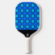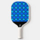 Esta design colorida divertida apresenta círculos trilhados, azul-claro, brilhantes, em preto, contra um fundo azul brilhante festivo e uma ponta inferior preta.