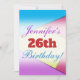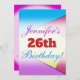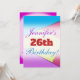 Este design de convite de aniversário divertido e personalizável apresenta um padrão de fundo geométrico colorido na frente, juntamente com um nome personalizado e um número de aniversário. A parte traseira apresenta detalhes de festa de aniversário personalizáveis.